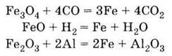 Одержання Відновлення оксидів феруму оксидом карбону (II), воднем або алюмінієм: