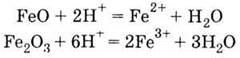 Оксид і гідроксид феруму (III) виявляють у більшості реакцій основні властивості. Але відповідно до сказаного у попередньому параграфі про кислотно-основні властивості оксидів і гідроксидів елементів у різних станах валентності Fе2 O3 і Fе(ОН)3 повинні володіти амфотерністю, тобто, крім основних властивостей, проявляти і кислотні.