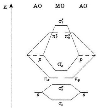 Рис. 6. Енергетична діаграма орбіталей двохатомних молекул s - і р-елементів.