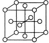 Рис. 22. Кристалічна ґратка аргону (гранецентрований куб), що складається з одноатомних молекул.