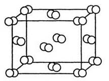 Рис. 23. Кристалічна ґратка йоду(гранецентрований куб), утворена двоатомними молекулами.