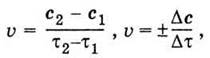 де с1 і с2 — початкова і кінцева концентрація речовини; τ1 і τ2 — початковий і кінцевий час здійснення хімічної реакції; ± Δc — зміна концентрації речовини (збільшення, зменшення) в ході реакції за відрізок часу Δτ (рис. 43).