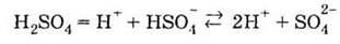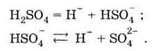 При цьому по першому щаблеві сульфатна кислота дисоціює необоротно, а по другому — оборотно.