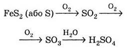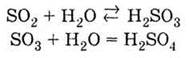 У творений при окисненні діоксиду сульфуру триоксид сульфуру — кислотний оксид. Під час його взаємодії з водою утворюється сульфатна кислота Н2SO4: