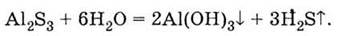 Якщо сіль утворена слабкою основою і слабкою кислотою, то в реакцію з водою водночас вступають обидва іони солі, гідроліз стає необоротним, тобто сіль розкладається водою. Наприклад, сульфід алюмінію Аl2S3 — сіль, утворена слабкою основою Аl(ОН)3 і слабкою сульфідною кислотою Н2 S, при сполученні з водою розкладається: