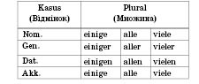 4. Займенники alle, einige, viele, beide, wenige вживаються тільки у множині і відмінюються, як означений артикль.