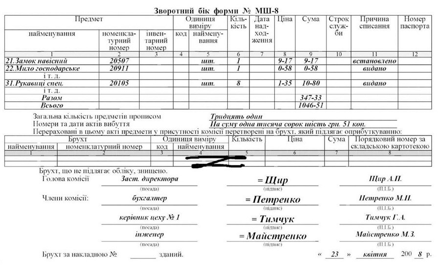 Списання бланків суворої звітності знаходить своє відображення по дебету рахунків 92 “Адміністративні витрати” або 93 “Витрати на збут” і кредиту рахунку 20 “Виробничі запаси”. Поряд з цим проводиться їх списання із позабалансового рахунку 08 “Бланки суворого обліку”.