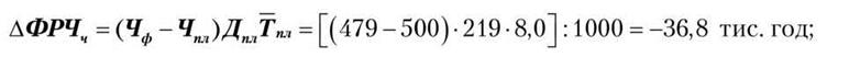 Згідно з проведеними вище розрахунками фонд робочого часу в порівнянні з планом скоротився на 111,5 тис. год., в тому числі за рахунок зменшення чисельності робітників — на 36,8 тис. год.; зменшення тривалості робочого періоду — на 34,5 тис. год.; скорочення тривалості робочого дня — на 40,2 тис. год.