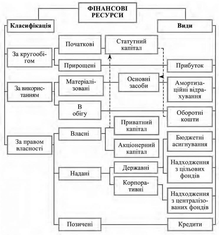 Матеріальним втіленням фінансових відносин на рівні господарських суб’єктів є фінансові ресурси. Під фінансовими ресурсами розуміють акумульовані підприємством грошові кошти з різних джерел, які надходять у господарський обіг і призначені для покриття його потреб. До фінансових ресурсів належать усі грошові фонди і та частина грошових коштів, яка використовується підприємством у нефондовій формі (рис. 4.2).