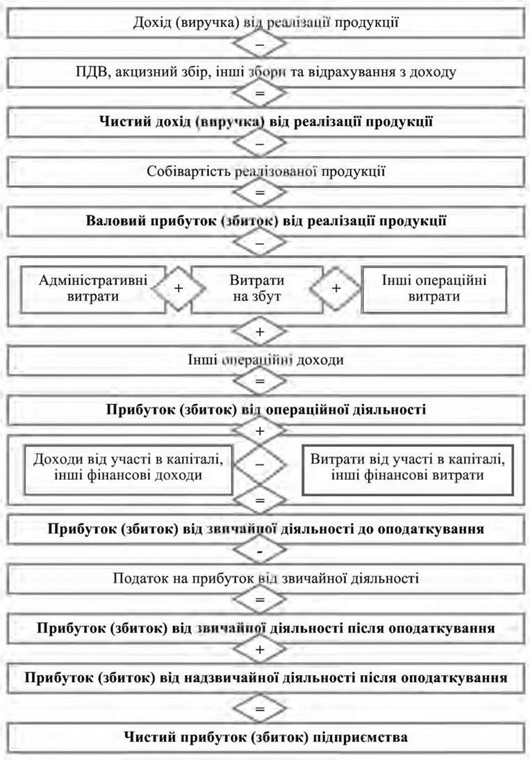 Рис. 4.3. Структурно-логічна схема формування чистого прибутку (збитку) підприємства