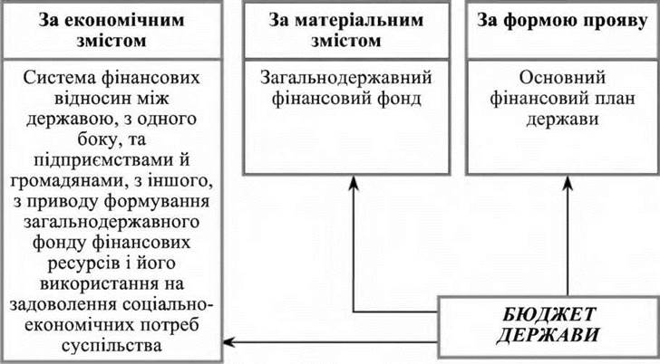 Оскільки бюджет держави є складним і багатогранним явищем у суспільстві, його розглядають з трьох позицій (рис. 6.1).