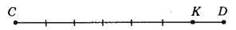 2) Нехай KD = х см, тоді СК = 6х см. Оскільки точка К — внутрішня точка відрізка CD, то маємо: СК + KD = CD або 6х + х = 28, звідси 7х = 28; х = 28 : 7; х = 4, тоді 6х = 6 х 4 = 24. Отже, СК = 24 см, KD = 4 см.