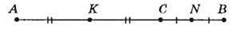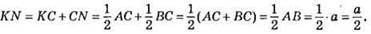 38. Нехай AB = а, К — середина відрізка АС (тобто AK = KC), N — середина відрізка ВС (тобто CN = NB). Тоді ![]()