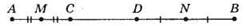 2-й випадок (точка С лежить між точками А і В). Нехай М і N — середини відрізків AB i АС, тоді ![]()