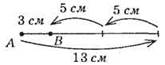 46. 1) Відкладемо від точки А на прямій відрізок 13 см і у зворотному напрямі два відрізки по 5 см, тоді AB = 13 — 2 x 5 = 3 (см).