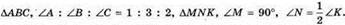 2) ∠A = 30°, ∠B = 60°, ∠C = 90°. 30° : 60° : 90° = 1 : 6 : 3 — правильно,