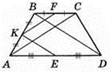 515. Доведення. У рівнобічній трапеції діагоналі рівні, АС = BD. KF — середня лінія ΔABC, KF = 1/2АС; КЕ — середня лінія ΔABD, КЕ = 1/2BD. KF = KE. Доведено.