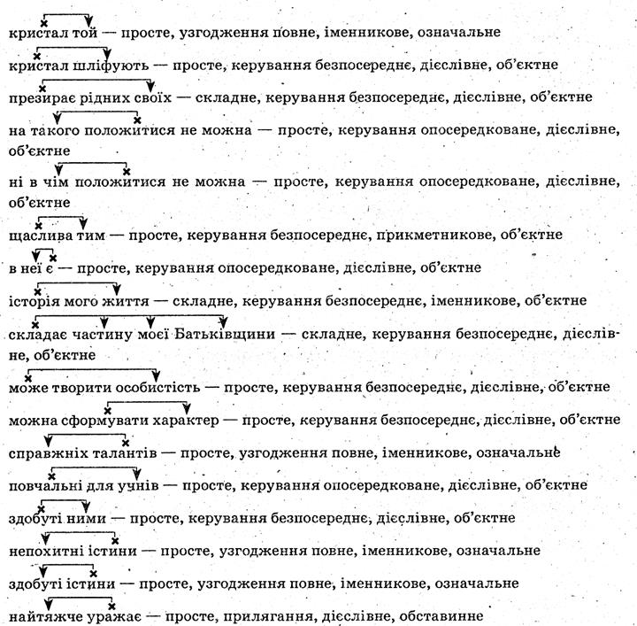 Слово до слова (керування), гостре словечко (узгодження), глибше ранить (прилягання), вимовиш язиком (керування), того не виб’єш (керування), не виб’єш кілком (керування), солодких слів (узгодження), буває гірко (прилягання), теплого слова (узгодження), ціна скарбу (керування).