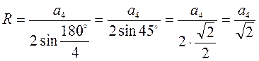Розглянемо трикутник АОВ, у якому АВ = an, АОВ =  як центральний кут правильного n-кутника. Проведемо висоту ОС цього трикутника, тоді АОС =  =  = .