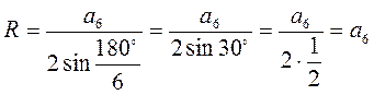 Сторона правильного трикутника дорівнює а, отже, радіус описаного кола R = .