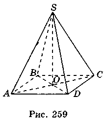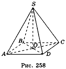 1) Нехай SABCD — правильна піраміда (рис. 258).