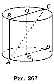 1. 2.   Діагональ АС осьового перерізу ABCD циліндра дорівнює 10 см, а його висота ОО1 — 8 см (рис. 267). Знайдіть площу поверхні та об'єм циліндра. (Відповідь. 66n см2 і 72n см)