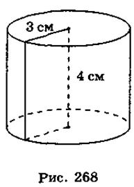 5. 5.   На рис. 268 зображено циліндр, радіус якого дорівнює 3 см, а висота – 4 см. Визначте, які з наведених тверджень є правильними, а які – неправильними.