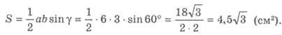 Приклад 1. Знайдіть площу трикутника, сторони якого дорівнюють 6 см і 3 см, а кут між ними 60º.