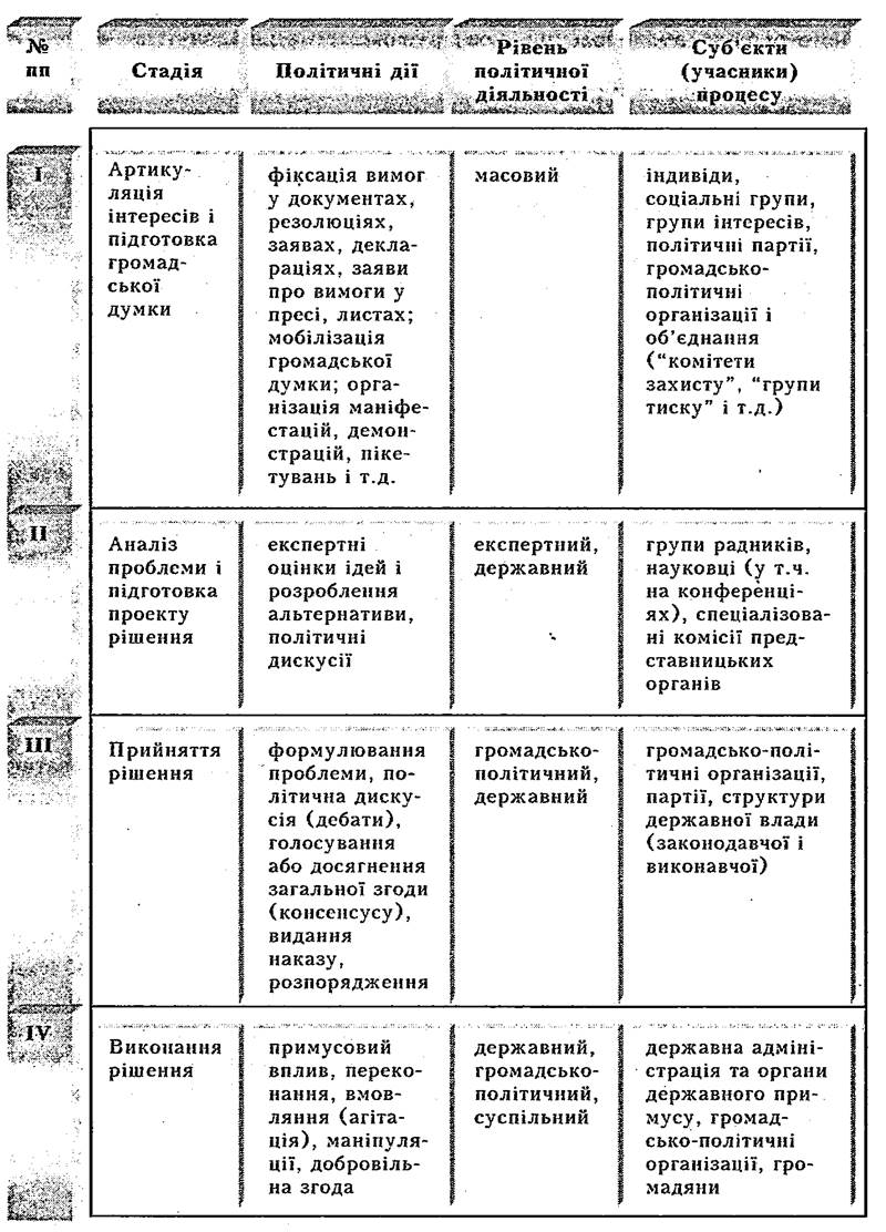 ПРОЦЕС ПРИЙНЯТТЯ ПОЛІТИЧНИХ РІШЕНЬ: СТАДІЇ, УЧАСНИКИ, ФОРМИ ПОЛІТИЧНИХ ДІЙ