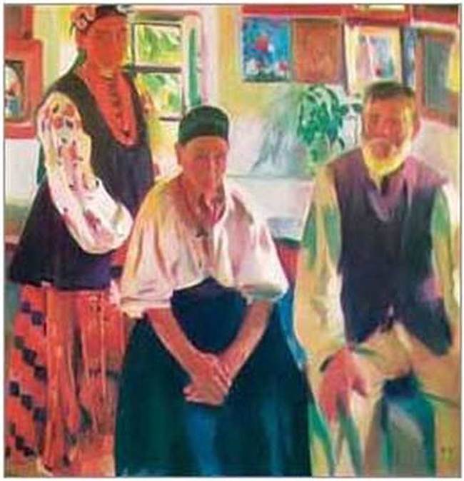 • Погляньте, як автор триптиха відобразив теплі родинні стосунки між різними поколіннями. Які засоби композиції він для цього використав?
