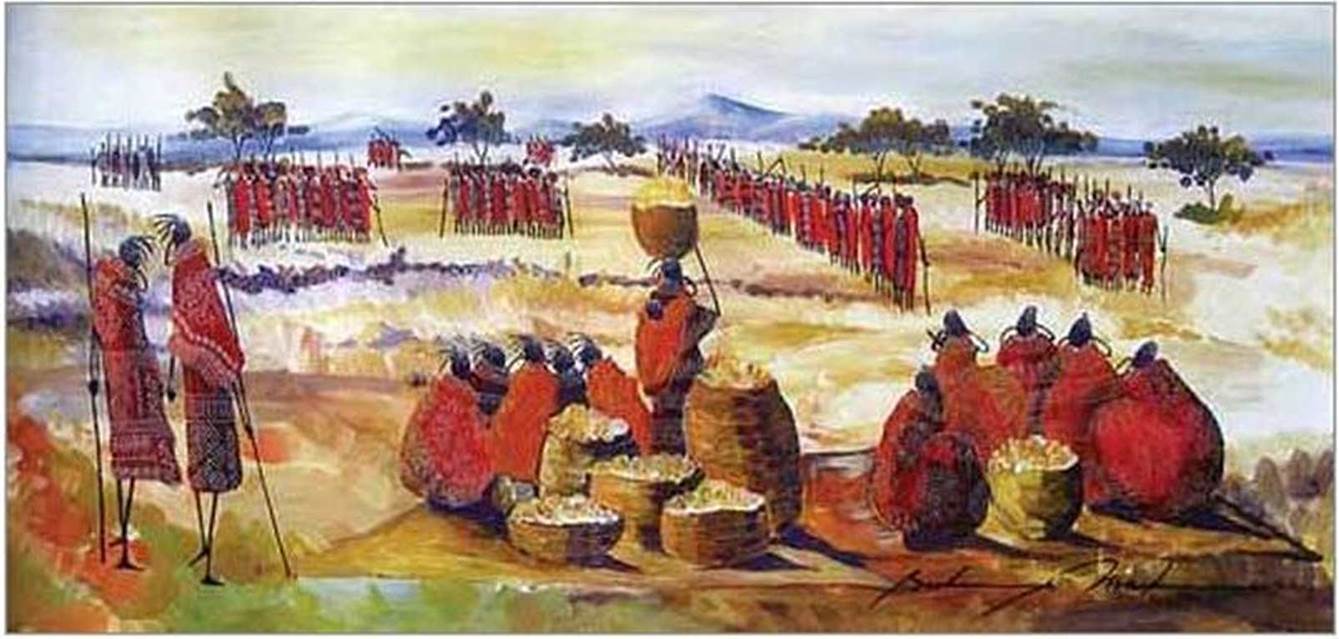 • Придивіться, як у картинах передано простір: на передньому плані розміри людей, тварин, дерев більші, ніж на дальньому. Вони детально промальовані, тоді як віддалені виглядають значно меншими і зображені узагальнено.