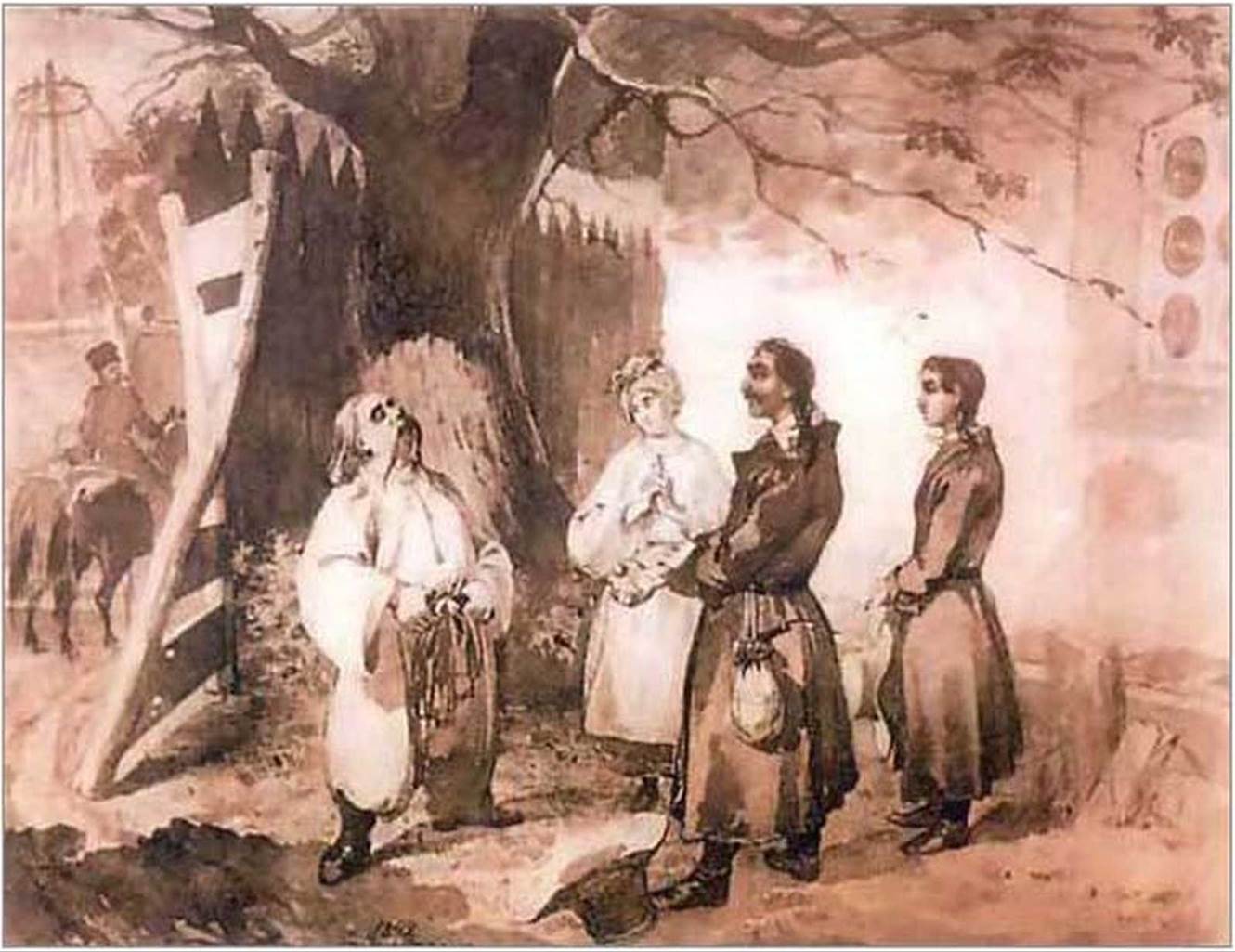 Т. Шевченко був першим художником, який звернувся до ілюстрування повісті М. Гоголя «Тарас Бульба». Події, що зображені в цьому творі, також пов'язані з історією України.