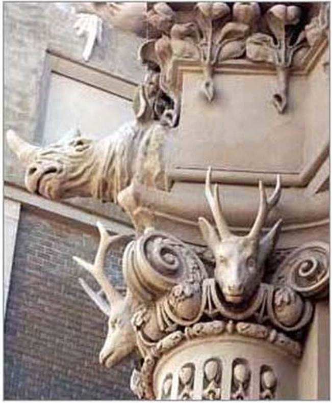 • Роздивіться рельєфні зображення тварин, які прикрашають фасади архітектурних споруд. Знайдіть на ілюстраціях зразки барельєфу і горельєфу. Порівняйте фактуру скульптур.