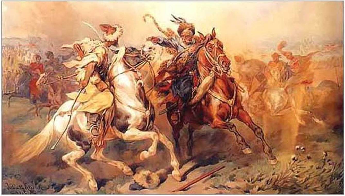 • Розгляньте живописні картини з батальними сценами. Зверніть увагу на динамічність рухів зображених осіб, контраст кольорів і тону в композиціях. Як вони сприяють вираженню драматизму подій?