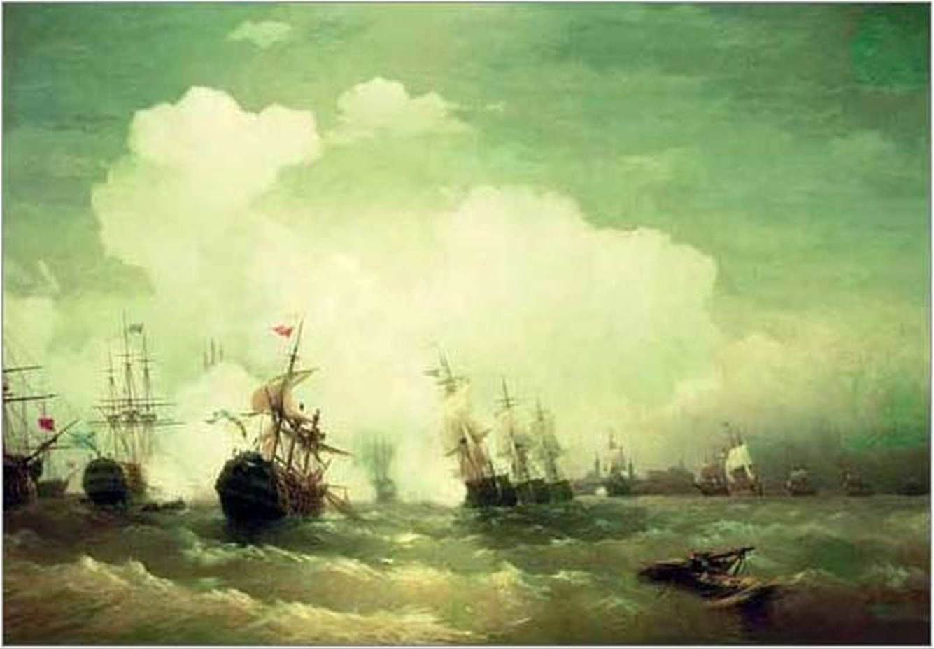 Зображення морських битв також належить до батального жанру і має свої особливості. Створення таких картин вимагає від художника не тільки глибоких знань про кораблі різних часів і вміння їх малювати, а й зображати море, небо, скелі в різний проміжок доби Й пори року. Адже деякі історичні битви на морі були довготривалими та відбувалися навіть вночі.