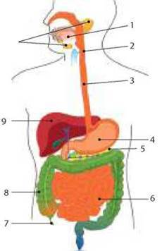 Біологія + Латина (4 бали) Зіставте названі латиною органи травлення людини із відповідними позначеннями на рисунку й отримайте назву хвороби підшлункової залози: п - cavum oris; т - glandulae salivariae; р - pancreas; и - hepar; а - pharynx; н - esophagus; к - gaster; е - intestinum tenue; т - intestinum crassum; а - appendix vermiformis.