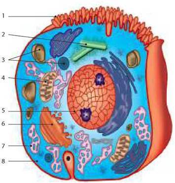 6 - апарат Гольджі; 7 - ендоплазматична сітка; 8 - цитоплазма