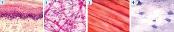 Іл. 6. Тканини організму людини: 1 - епітеліальна; 2 - сполучна; 3 - м'язова; 4 - нервова