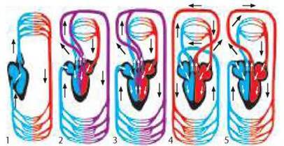 Іл. 37. Транспорт речовин в організмі людини: 1-4 - чотирикамерне серце; 5, 12 - артерії, якими кров тече від серця;