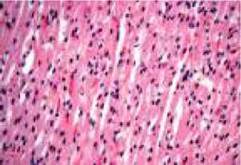 Іл. 49. Клітини міокарда - кардіоміоцити - містять декілька ядер, багато мітохондрій і з'єднані між собою дисками