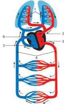 4 - велике коло кровообігу; 5 - правий шлуночок; 6 - праве передсердя