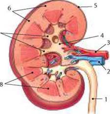 8 - ниркові піраміди, що утворюють мозкову речовину