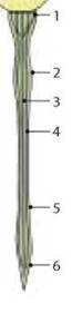 1. Розгляньте зовнішню будову спинного мозку і визначте цифри, якими позначено такі елементи будови: мозковий конус, передня борозна, бічна борозна, довгастий мозок, шийне потовщення, поперекове потовщення.