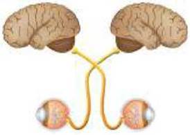 Проведення імпульсів здійснюють правий і лівий зорові нерви, волокна яких перехрещуються перед входом у мозок |