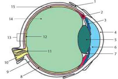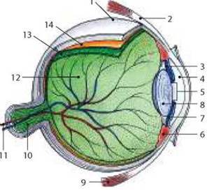 9 - склера; 10 - зоровий нерв; 11 - сліпа пляма;