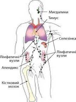 До центральних органів імунної системи відносять кістковий мозок і тимус, а до периферичних - мигдалики, лімфатичні вузли, селезінку та апендикс.