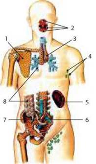 Лімфатичні вузли - невеликі тільця округлої або бобоподібної форми, які у вигляді скупчень розміщуються переважно на шиї, у паху, у стінках травного каналу й дихальних шляхів.