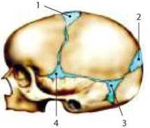 У черепі новонародженого є тім'ячка - ділянки між кістками черепа, захищені м’якою сполучною тканиною. Малюк народжується з шістьма тім’ячками: чотири з них закриваються в перші дні життя, п’яте - приблизно на другому місяці, а шосте - найбільше, - закривається в період від трьох місяців до двох років. Це переднє (1) та заднє (2), два клиноподібні (3) та два соскоподібні (4). Застосуйте знання черепа й опишіть розташування тім’ячок, визначте їхнє біологічне значення.