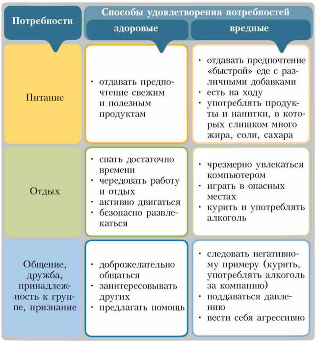 - Подготовьте сообщение о здоровых и вредных способах удовлетворения этих потребностей.