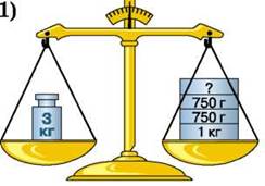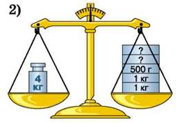 329. Маса деяких гир невідома. Скільки грамів важить кожна з них на рисунку 3 і рисунку 4?